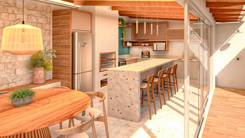 Localizada em Porto Sauípe – BA, esta Área Gourmet foi concebida como um anexo estratégico a uma residência existente, ampliando significativamente o potencial de convivência e lazer do imóvel. Implantada no fundo do terreno, a proposta promove integração total entre cozinha, estar e área externa, criando um espaço generoso e funcional para receber familiares e amigos.