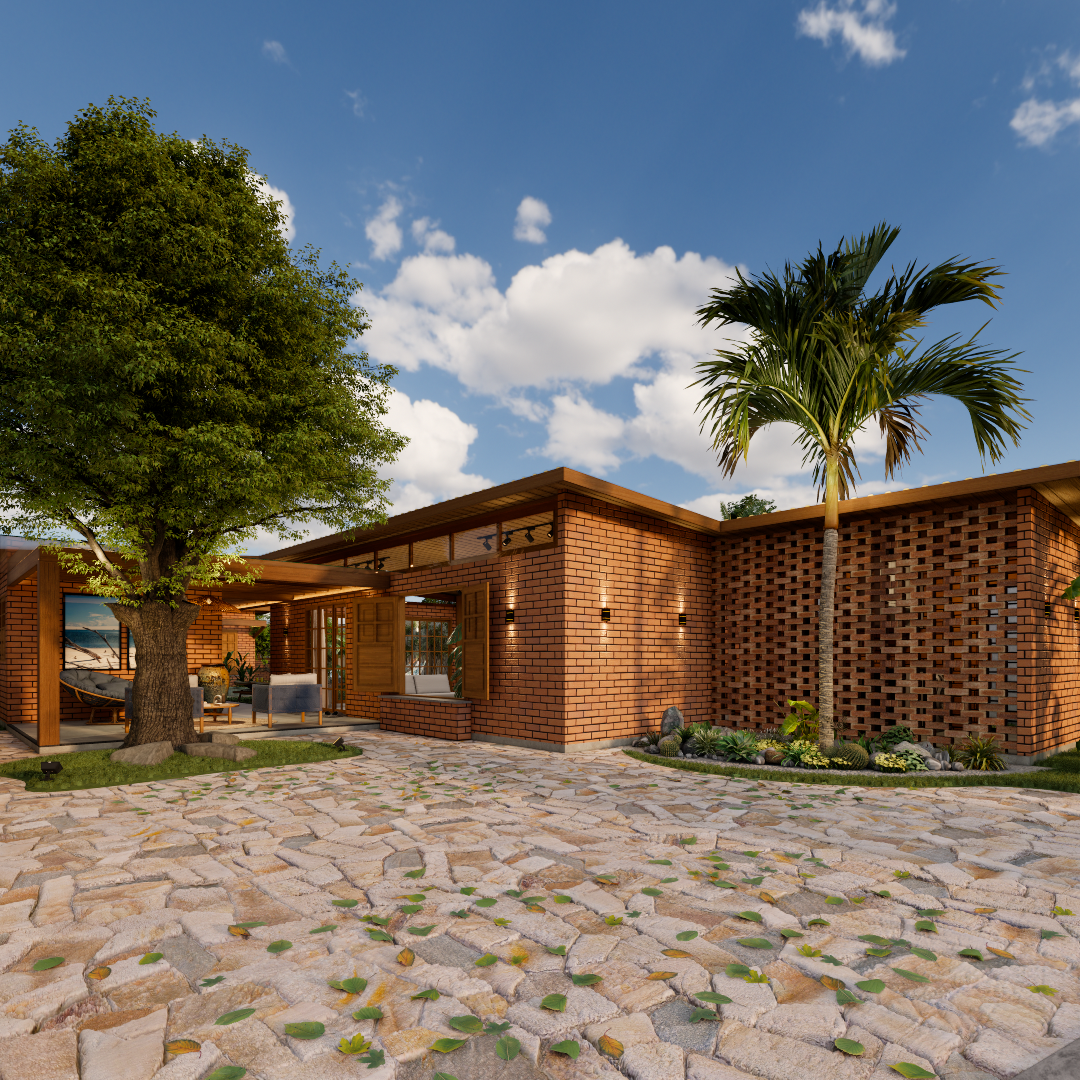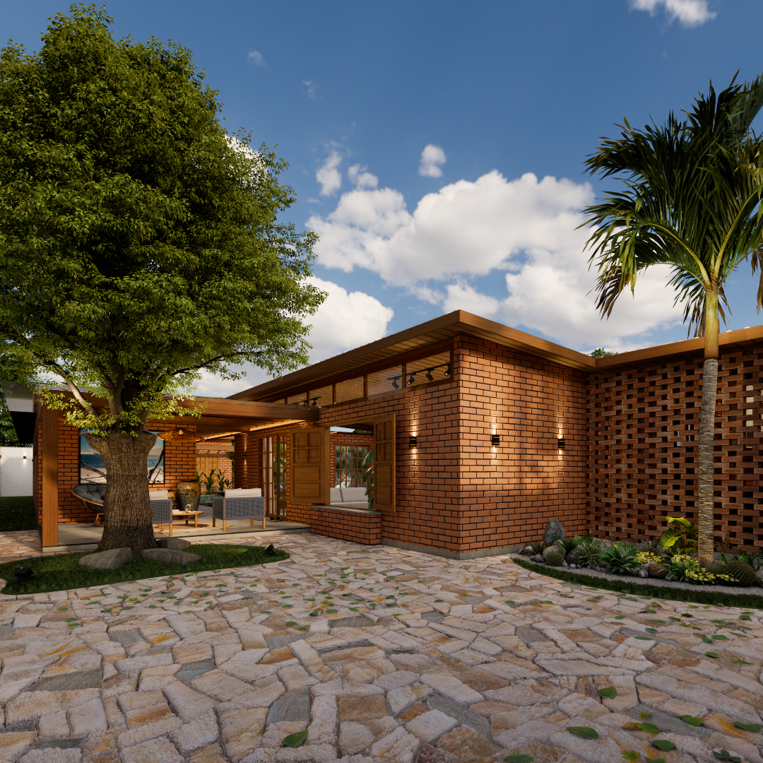 A arquitetura sustentável une funcionalidade, sustentabilidade e custo-benefício neste projeto residencial, que traduz as necessidades do cliente em soluções conscientes — como o uso de tijolos ecológicos e escolhas que reduzem custos sem perder conforto e identidade.