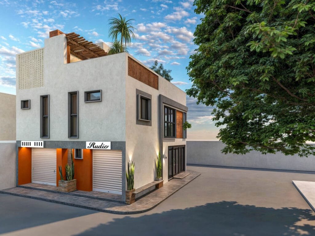Localizada em frente à praça principal do distrito de Queimada do Mendes, pertencente a Barra do Mendes – BA, esta Casa e Comercial nasceu da necessidade de otimizar um lote pequeno com inteligência estratégica. A cliente desejava uma residência compacta, com dimensões semelhantes a um apartamento, mas que também gerasse renda através de espaços comerciais para locação. O resultado é um projeto híbrido que valoriza o terreno, fortalece a economia familiar e se integra ao ritmo urbano da cidade.
